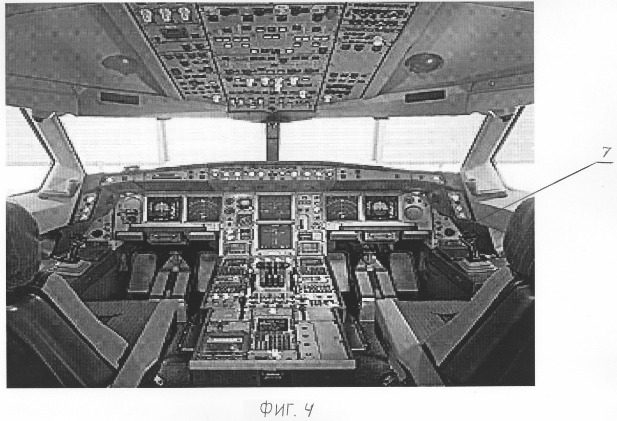 Фиг.4. Общий вид универсальной кабины экипажа вариационного летательного аппарата, вид внутри кабины, спереди.
