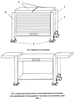 9. Устройство для транспортирования противопожарного и аварийно-спасательного оборудования, эвакуации материальных ценностей и пострадавших людей, представляющее собой сменный контейнер для оборудования, с возможностью размещения на транспортном средстве, и имеющий собственную ходовую часть, отличающееся тем, что массогабаритные параметры контейнера, с учетом размещаемого в нем оборудования, подобраны таким образом, что позволяют перемещать его мускульной силой одного человека по горизонтальным и наклонным поверхностям или двух человек – по лестничным маршам, а также размещать его в лифтах, клетях, дверных проемах, на лестничных маршах, эскалаторах, трапах, пандусах, причем для обеспечения эвакуации людей в верхней части контейнера предусмотрены шарнирно закрепленные полотна, которые при раскладывании образуют вместе с верхней частью контейнера поверхность для размещения человека, причем контейнер выполнен аналогичным по размеру отсеку транспортного средства, расположен и закреплен в тех же местах кузова, что и отсек.