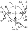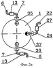 Кроме того, устройство содержит несущий узел, выполненный в виде рычагов, соединенных шарнирами с вертикальными осями, соосными осям шарниров с вертикальными осями трубопровода подачи жидкого продукта и газоуравнительного трубопровода.