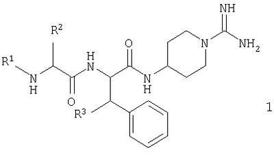 В своем первом аспекте настоящее изобретение включает серию новых 4-(дипептидиламино)-пиперидин-1-карбоксамидинов согласно общей формуле 1