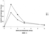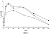 При оценке изменения скорости разрушения нефти было установлено, что максимальная убыль наблюдалась в течение первого месяца. В варианте 8 она достигала 0,86% в сутки от общего содержания (см. фиг.3). В контрольном варианте эта величина была равна 0,55% в сутки. На протяжении второго месяца скорость деградации снизилась в варианте 8 до 0,47, а в контроле – до 0,27% в сутки, в течение третьего месяца она составляла 0,18 и 0,14% в сутки в 8 и контрольном вариантах соответственно. Через шесть месяцев в сутки разрушалось лишь 0,07 в опытном и 0,08% – в контрольном варианте. Полученные данные показывают, что процессы деструкции замедляются через 2-3 месяца обработки, что указывает на целесообразность завершения стимуляции УОМ данным способом. На фиг.3 показана скорость разрушения нефти в опытном варианте 8 и контрольном варианте 1.