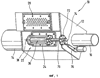 На каждом из своих концов регулирующий расход элемент 36 дополнительно имеет по уплотнительному фланцу 62, 64, который имеет форму круглого цилиндра и который вставлен в соответствующее круглое отверстие в боковой стенке патрубка 24 и уплотнен в этом отверстии уплотнительным кольцом круглого сечения. Необходимо отметить, что диаметр обоих этих круглых отверстий в боковых стенках патрубка 24 превышает длину большой оси эллипса, форму которого в поперечном сечении имеет регулирующий расход элемент 36, который благодаря этому после отсоединения обоих крепежных фланцев 58, 60 можно извлечь через эти отверстия из соплового канала 26 и вновь установить на место.