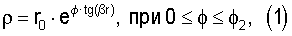 Линия A1B1C1 сопряжения лопатки 11 и дискового основания 12 лежит в плоскости . Линия A1B1C1 сопряжения лопатки 11 и дискового основания 12 имеет форму выпуклого в направлении вращения ротора участка логарифмической спирали, заданной в полярных координатах плоскости выражением (2).