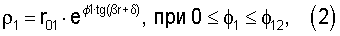 1 – длина радиуса-вектора O1B1 точки B1 линии A1B1C1 сопряжения лопатки 11 и дискового основания 12, соответствующей полярному углу 1,
