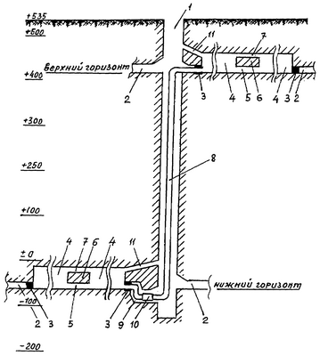 11 – сбойки с шахтным стволом.