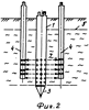 На фиг.2 показан инъектор 1, теряемый наконечник 3, частично извлеченный перфорированный трубчатый элемент 4, верхняя граница водонасыщенного грунта 5, направление движения закрепляющего раствора 7.