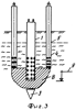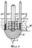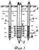 Таким же образом выполняются и другие зоны закрепления водонасыщенного грунта, считая по высоте скважины. При этом давления сжатого воздуха и закрепляющего раствора для каждой зоны выбираются исходя из конкретных инженерно-геологических параметров закрепляемого слоя, отметки нижнего конца инъектора и степени ее обезвоживания в результате воздействия сжатым воздухом на нижележащие зоны, а также с учетом степени разрежения, создаваемого зонами с пониженным давлением.
