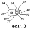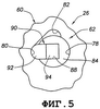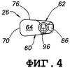 Блокировочный элемент 62 имеет удлиненный цилиндрический корпус 84, нижний продольный участок которого (как видно на фиг.2) соосно и с возможностью вращения вмещается внутри отверстия 78 соединительного элемента, причем верхний концевой участок корпуса 84 выступает наружу из участка 72 встроенной концевой поверхности соединительного элемента. Поперечная крепежная лапка 86 прикреплена к выставленному наружу концу корпуса 84 блокировочного элемента, и нижний концевой участок корпуса 84 внутри отверстия 78 имеет боковую упорную выемку 88, проходящую радиально внутрь через его наружную боковую поверхность. Как схематично изображено в виде разреза на фиг.5, упорная конструкция 90 вмещается в упорной выемке 88 и содержит радиально наружный металлический упорный элемент 92, прикрепленный к эластомерному радиально внутреннему упорному участку 94. Упорный элемент 92 упруго смещен, чтобы выступать наружу из выемки 88, но его можно радиально втолкнуть в выемку 88 против упругого сопротивления эластомерного участка 94.
