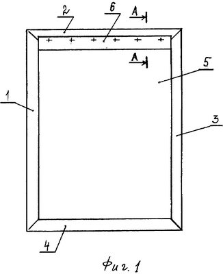замкнутый швеллерный каркас с верхним 2 (см. фиг.1, 2), нижним 4 и боковыми 1, 3 участками, с контактными поверхностями и сквозной полостью 5, уплотняющее устройство с корпусом с полостью 8 с входом/выходом, опорой 6 и полкой 7, подвижную планку 9, причем корпус посредством опоры 6 закреплен к контактной поверхности «Б» верхней части 2 каркаса так, что вход/выход в полость 8 размещены со стороны сквозной полости 5, полка 7 размещена под острым углом f относительно опоры 6, а подвижная планка 9 установлена на полке 7 с возможностью перемещения так, что частично выступает в сторону сквозной полости 5, за пределы полости 8 и контактной поверхности «Е» верхней части 2 каркаса.