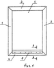 замкнутый швеллерный каркас с верхним 2 (см. фиг.1), нижним 4 и боковыми 1, 3 участками, с контактными поверхностями «Е», «Б» (см. фиг.2), размещенными на нижнем участке 4, сквозной полостью 5, уплотняющее устройство, содержащее корпус с полостью 10 с входом/выходом, опорой 6, верхней 7 и нижней 8 полками, подвижную планку 9, причем корпус посредством опоры 6 закреплен к контактной поверхности «Б» нижней части 4 каркаса так, что вход/выход в полость 10 размещены со стороны сквозной полости 5, нижняя полка 8 размещена под острым углом f относительно вертикальной геометрической оси, а подвижная планка 9 установлена на нижней полке 8 с возможностью перемещения так, что частично выступает в сторону сквозной полости 5, за пределы полости 10 и контактной поверхности «Е» нижней части 4 каркаса. Подвижная планка 9 установлена с возможностью поворота (на фиг.2 направление поворота условно показано стрелками) и предназначена для обеспечения уплотнения между нижней частью 4 каркаса и дверным полотном (дверное полотно условно показано пунктирными линиями и оно не входит в состав коробки дверной). В исходном положении часть подвижной планки 9 всегда выступает из полости 10 в сторону сквозной полости 5 и за пределы контактной поверхности «Е». Корпус уплотняющего устройства (далее – корпус) в сечении А-А, согласно фиг.1, образован по геометрической форме, показанной на фиг.2. Корпус посредством опоры 6 закреплен к контактной поверхности «Б» нижней горизонтальной части 4 каркаса крепежными изделиями, преимущественно заклепками или точечной сваркой, и образует с нижней частью 4 каркаса неразъемное соединение. Острый угол f выбирают из интервала значений – 30-45°. Именно при указанной величине острого угла f обеспечивается самопроизвольный возврат, под действие силы тяжести, подвижной планки 9 и ее укладка на нижней полке 8, после снятия на нее воздействия. Корпус образован из стального листа или ленты или полосы толщиной, равной 0,4-1 мм. Подвижная планка 9 также может быть образована из стального листа, или ленты, или полосы, или полимерного материала. Каркас в сечении А-А, согласно фиг.1, образован по форме неравнополочного гнутого швеллера, согласно фиг.2.