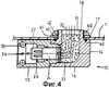 На фиг.3 и 4 хорошо видно, что все три соединительные муфты 11, 12, 13 имеют одинаковую конструкцию и одним и тем же способом крепятся на основной части 14. Основная часть 14 имеет на своих боковых сторонах 15 отдельное установочное отверстие 21 для каждой соединительной муфты 11, 12, 13, в которое вставляется выполненная с несколькими уступами фиксирующая втулка 22 соединительной муфты 11, 12, 13. Каждая из соединительных муфт 11, 12, 13 снабжена проходным отверстием 23, при этом в области фиксирующей втулки 22 расположена контактная вилка 24, выполненная в виде SКК24-вилки, которая установлена с уплотнением с помощью кольцевого уплотнения 25. Контактная вилка 24 включает известным образом два открытых контактных штифта 26 и две контактных гнездовых детали 27, которыми контактная вилка также в данном случае с четырьмя возможностями контакта, расположенная на штекерной головке части шлангового кабеля, может обеспечить электрическое соединение при установке штекерных головок в соединительные муфты 11, 12, 13. Каждая фиксирующая втулка 22 на своей внешней стороне снабжена канавкой для другого кольцевого уплотнения 28 для уплотнения соединительных муфт 11, 12, 13 при их установке в приемное отверстие 21, где они могут быть закреплены и зафиксированы с помощью фиксирующего штифта 29. Фиксирующие штифты 29 проходят при этом через отверстия 30 для фиксации в основной части 14, которые доступны с нижней стороны 16 основной части 14.
