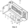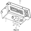 На фиг.5 показан альтернативный пример выполнения устройства 150 индивидуального управления для управления работой секций механизированной крепи при подземных горных работах. Собственно корпус устройства индивидуального управления выполнен, по существу, идентично описанному ранее примеру выполнения, и идентичные части снабжены теми же ссылочными позициями. На нижней стенке 1 корпуса устройства 150 индивидуального управления, как и в предыдущем случае, закреплено вилочное устройство 110 с находящимися вне корпуса соединительными муфтами 11, 13 для кабелей, связывающих соседние секции крепи, при этом вилочное устройство 110 так же, как и в первом примере выполнения, имеет не показанную здесь крепежную втулку, которая вставляется в проходное отверстие с последующим закреплением в нижней стенке 1 корпуса и закрепляется на нижней стенке 1 с использованием кольцевого уплотнения посредством гайки. В отличие от первого варианта выполнения вилочное устройство 110 имеет только две соединительные муфты 11, 13, предназначенных исключительно для связи с соседними секциями крепи. Обе соединительные муфты 11, 13 развернуты относительно друг друга под углом 90° и размещены, по существу, на углах между боковыми стенками 3, 4 и задней частью 5 корпуса устройства 150 индивидуального управления. Обе соединительные муфты 11, 13, как и в первом примере выполнения, закреплены на двух соседних боковых сторонах 115 основной части 114 вилочного устройства 110. Благодаря выполнению вилочного устройства 110 в виде угловой вилочной части с разворотом обеих соединительных муфт 11, 13 на 90° оба шланговых кабеля для связи с соседними секциями крепи могут подводиться от соседних секций крепи к устройству 150 индивидуального управления, установленному на средней секции, с большим радиусом изгиба.