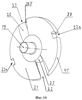 где – угол поворота сечения тора вокруг оси тора, 0 – половина угла, на котором ребра 13 и 13а не горизонтальны, – угол поворота радиус-вектора сечения тора, a 0 – половина углового расстояния между соседними вырезами 22, – угловой размер негоризонтального конца направляющей 13а,