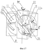 В конструкциях с двумя поршнями, показанных на фиг.25-28, можно избавиться от направляющей 13а, заменив ее, например, зубчатым зацеплением между поршнями. Такая возможность существует благодаря следующему характеру взаимодействия двух поршней. Один поршень должен от небольшой скорости останавливать другой, далее в течение определенного времени должен обеспечивать неподвижность другого, а затем придавать небольшую скорость. Далее поршни могут не взаимодействовать друг с другом. (При частичном использовании неравномерности вращения слово останавливать следует понимать как замедлять, неподвижность – как медленное вращение.)