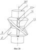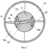 спиралеобразный разделитель 13, перегораживающий участок 12б камерообразующей полости 12 по существу по диагонали, разбивая его на своего рода криволинейные треугольники;