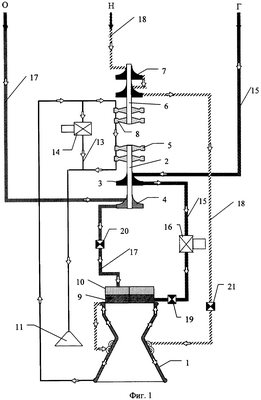 Изобретение относится к области двигателестроения и может быть использовано при создании жидкостных ракетных двигателей (ЖРД), работающих по безгенераторной схеме.