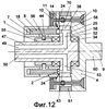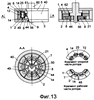 Фиг.12 – роторная шиберная машина с адаптивным ротором, силовым замыканием на ротор без связующего элемента ротора и соединением рабочей и опорной частей ротора силовыми камерами изменяемой длины, работающими на притяжение частей ротора друг к другу – осевое сечение плоскостью, проходящей через входной и выходной порты;