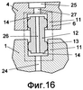 Фиг.18 – вариант исполнения силовой камеры изменяемой длины: вмещающий элемент в опорной части ротора, силовой выступ в рабочей части ротора и соединитель, состоящий из вмещающего элемента и вложенного элемента;