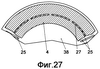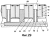 Радиальные размеры этих полостей выбираются таким образом, чтобы обеспечивать описанное существенное гидравлическое уравновешивание опорной части ротора, а их дуговые размеры выбираются таким образом, чтобы препятствовать перетеканию рабочей жидкости между соседними переносимыми объемами и полостями всасывания и нагнетания. Это означает, что изолирующие поверхности опорной части 4 ротора, включающие перемычки между каналами 27 (фиг.27), находящиеся в скользящем контакте с изолирующей поверхностью операционного узла 38 корпуса, должны полностью перекрывать указанные опорные полости 25 операционного узла 38, проходя соответствующий участок. В таком варианте исполнения, как на фиг.25, фиг.28, поверхность опорного торца опорной части 4 ротора может не содержать никаких полостей. Указанные опорные полости 25 в опорной крышке операционного узла корпуса гидравлически сообщаются указанными каналами 70 с соседними по угловому расстоянию полостями в рабочей камере рабочей части 1 ротора таким образом, что каждый выполненный в ограничителе прямого 15 или обратного 21 переноса канал 70, который перекрыт поверхностью шибера 8 или дна кольцевого паза 2 со стороны рабочей части 1 ротора, сообщается с опорной полостью 25, которая в то же время перекрывается скользящим изолирующим контактом поверхности опорной части 4 ротора с опорной крышкой 5 операционного узла корпуса 38.