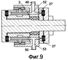 Фиг.9 – роторная шиберная машина с адаптивным ротором, силовым замыканием на ротор и со связующим элементом ротора, выполненным в форме “катушки” – осевое сечение плоскостью, проходящей через входной и выходной порты.