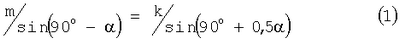 Соотношение между размером плоского отражающего элемента 5 и минимально возможной площадью теплового коллектора 6 можно определить из треугольника ADM (см. фиг.2). По теореме синусов имеем: