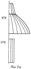 Кроме того, у теплообменников, в частности у ОТО и ПТО, существует проблема теплового удара, когда последние вводятся в фокальную область зеркала. Происходит резкое расширение стенок ОТО и ПТО, причем их внутренние стенки (рабочая поверхность) деформируются больше и раньше, чем наружные стенки, которые прогреются до той же температуры позже, спустя несколько минут. Но этого достаточно, чтобы в теле ОТО и ПТО возникли трещины из-за неравномерного нагрева. На фиг.2 показана продольная деформация стенок ОТО при тепловом ударе. Здесь условно принято, что зафиксирован стык между верхней и нижней частями ОТО. Проблему можно решить и резко уменьшить деформации, если выполнить стенки в виде продольных отдельных воздуховодов трапецевидного сечения, показанных на фиг.3а. При этом тепло от рабочей стенки к наружной стенке ОТО будет передаваться не только струёй воздуха, но и металлическими перемычками между внутренней и наружной стенками, что резко ускорит выравнивание температур между стенками. На фиг.3б показано поперечное сечение воздуховодов и видны перемычки между стенками и трапецевидное сечение воздуховодов. Введение отдельных воздуховодов плодотворно тем, что стенки ОТО и ПТО получают возможнсть “дышать” при тепловом ударе, иметь больше гибкости, одинаковые деформации и не ломаться.