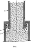 При подвешенном расположении внутренней стенки 4, приводимом в качестве одного из примеров исполнения, стенка имеет металлический внутренний слой-подложку 5 с каналами 6 воздушного охлаждения. На своем нижнем конце канал переходит в крепежное устройство 7 для нижнего опорного кольца 8, отлитого из жаропрочного бетона. Металлический внутренний слой-подложка 5 с двух сторон защищен изолирующими слоями 9, 10. Внешняя изоляция внутренней стенки 4 образует соответственно защитную обкладку из жаропрочных кирпичей 11, 12, образующих внешний выпуклый и внутренний вогнутый огнеупорный слой 13, 14.