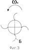 На фиг.3 изображен вид стабилизатора с носика снаряда с раскрытыми лопастями, обращенными выпуклыми поверхностями (Б) в направлении вращения ( х).
