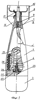 Предлагаемый конструктивный вариант линейного акустического излучателя – линейного заряда 4 (см. фиг.4) может быть выполнен из эластичного взрывчатого вещества в виде шнура круглого сечения, размещенного в общей оболочке 19, выполненной из капроновых нитей. Линейный заряд 4 может содержать основной удлиненный цилиндрический заряд 20, инициируемый в его середине через передаточный шнур 21 от передней торцевой цилиндрической шашки 22, примыкающей к детонатору 23 (см. фиг.1, 3 и 4) взрывательного устройства 3, и инертные взрывонепроницаемые прокладки 24, защищающие основной заряд 20 от преждевременного срабатывания. Крепление линейного заряда 4 в головной втулке 25 может быть осуществлено с помощью наконечника 26 с отбортовкой 27, а с вытяжным устройством 5 – с помощью наконечника 12 и соединительного звена 9.