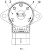 Большинство новых модулей педали акселератора снабжаются парой внешних пружин на педальном приводе модуля, на встраивание в который рассчитан датчик. Поскольку предполагается внешнее ограничение крутящего момента, в конструкции датчика, показанного на фиг.1-4, не задействована пружина кручения. Введение цилиндрической или конической возвратной пружины в датчик будет желательным, например, при преобразовании заявленного устройства в датчик положения дроссельной заслонки или подвески. Пружина кручения применяется для противодействия вращательному движению вала управляющего привода и осуществления возвратного движения против часовой стрелки; это одна из возможностей для повышения надежности и усиления адаптивности устройства к конкретным условиям работы.