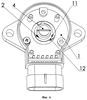 Установочная втулка 2 ротора механически связана с вращающимся валом детектируемого объекта (цели) и имеет возможность поворота на ограниченный угол в основании корпуса 1. С обратной стороны втулки 2 имеется лыска для установки устройства на вал с заданной начальной ориентацией. Корпус 1 жестко крепится двумя винтами к неподвижной части объекта.