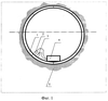 На фиг.1 представлена схема размещения аппаратуры при реализации предлагаемого способа; на фиг.2 – эмпирическая зависимость, связывающая декремент затухания акустических колебаний и среднюю толщину цемента за обделкой тоннеля метрополитена.