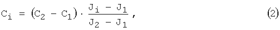 Для определения содержания флуоресцеина натрия в четырехкомпонентной композиции индикаторов в анализируемой смеси предлагаемым способом, также как и в известном способе, использовали градуировочную зависимость (см. табл.1, п.1). Измерение концентрации других индикаторов (нитрат калия, карбамид и роданид калия) предлагаемым способом осуществлялось интерполяционным методом по результатам трех совокупных измерений, одно из которых относится к анализу исследуемой пробы, а два других – к модельным растворам исходной пластовой воды с добавкой флуоресцеина натрия в количестве, равном его концентрации в исследуемой пробе, измеренной флуориметром с помощью градуировочной зависимости. В каждый из модельных растворов добавляли соответствующие реактивы для спектрофотометрического определения отдельных индикаторов, а также навеску анализируемого индикатора, чтобы сигнал спектрофотометра для одного из модельных растворов стал больше, а для другого – меньше сигнала исследуемой пробы. Концентрацию соответствующего индикатора относительно двух добавок рассчитывали по уравнению: где Сi – концентрация i-го индикатора в исследуемой пробе, мг/л; С1 и С2 – концентрации добавки i-го индикатора в модельных растворах 1 и 2, Ji, J1 J2 – сигналы спектрофотометра соответственно для i-го компонента в исследуемой пробе и в модельных растворах 1 и 2, причем J1 Результаты эксперимента сведены в таблицу 2.