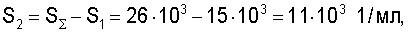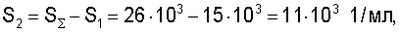 По полученным значениям t1Ф и t2Ф и по калибровочным кривым t1Э(S) и t2Э(S) для минерального моторного масла 15W40 (фиг.9) определяем, что концентрация частиц угарной природы в верхней половине измерительной емкости составляет: S1 15·103 1/мл; а сумма концентраций S частиц угарной природы S1 и металлической природы S2 в нижней половине измерительной емкости составляет: S =S1+S2 26·103 1/мл