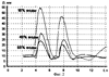 Пример графика зависимостей диаметра (D) ТК отклика от времени (t) показан на фиг.2. Зависимости получены со смесями этилового спирта и воды при воздействии серией импульсов (нагрев/охлаждение/нагрев/ охлаждение). Их индивидуальность (фиг.2), отражает сложные взаимосвязи конвективных процессов в жидкости с комплексом ее тепловых, механических и др. характеристик, что является основой предлагаемого способа идентификации и контроля качества жидкостей.
