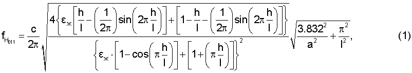 где Ж – относительная диэлектрическая проницаемость исследуемой жидкости; h – уровень заполнения жидкости; l – длина, а – радиус ЦОР; с – скорость света в вакууме.