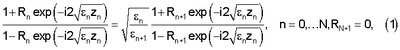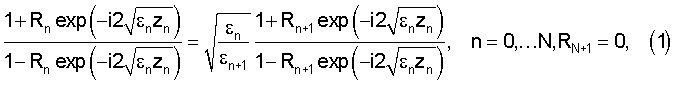 – безразмерная координата границы между слоями n и n+1, n – диэлектрическая проницаемость слоя с номером n; Zn – размерная координата, отсчитываемая от верхнего слоя, =c /2 – длина волны, с – скорость света в вакууме, – частота излучения.