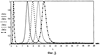 На фиг.3 показаны зависимости контуров пропускания от длины волны (аппаратной функции ОФУ, содержащего четыре установленных друг за другом интерферометра) Zn( , dn, ), рассчитанные для пучка, распространяющегося вдоль оптической оси устройства, при | |=4° и следующих расстояниях между пластинами интерферометров: