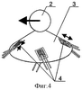 На фигуре 4 схематично показан процесс деформирования тензорезисторов 4 при приложении усилия параллельно плоскости размещения основания упругого элемента 3 при перемещении объекта управления. Например, при приложении усилия на управляющую рукоятку 2, направленного налево, тензорезисторы 4, расположенные по направлению приложения усилия, сжимаются, а тензорезисторы 4, расположенные против направления приложения усилия, растягиваются. Две другие пары тензорезисторов 4, расположенные перпендикулярно линии приложения усилия, при этом не деформируются, либо их деформациями можно пренебречь ввиду малости значений откликов.