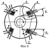 Как при приложении крутящего момента по часовой стрелке, так и против, для того, чтобы управлять вращением объекта сразу в трех плоскостях, тензорезисторы 4 на упругом элементе 3 расположены на внутренней и внешней поверхностях радиально от центра с углом тангенциального наклона относительно линии внешней окружности упругого элемента 3. При этом, если угол тангенциального наклона 1 тензорезисторов 4, расположенных на внутренней поверхности упругого элемента 3, отсчитывается по часовой стрелке от линии окружности (при виде на упругий элемент 3 сверху), то угол тангенциального наклона 2 тензорезисторов 4, расположенных на его внешней поверхности, должен отсчитываться против часовой стрелки. Или наоборот, если угол тангенциального наклона 1 тензорезисторов 4, расположенных на внутренней поверхности упругого элемента 3, отсчитывается против часовой стрелки, то угол тангенциального наклона 2 тензорезисторов 4, расположенных на его внешней поверхности, должен отсчитываться по часовой стрелке. При этом между осями пар тензорезисторов 4, расположенных на внутренней и внешней поверхностях упругого элемента 3, должен образовываться некоторый определенный угол .