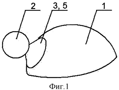 На фигуре 2 упругий элемент 3 трехмерного микроджойстика выполнен из эластичного или пружинного материала, например из поликарбонатного пластика, силиконовой резины или пружинной стали, в виде полого конуса. Возможны любые модификации формы упругого элемента 3, например оснащение его вырезами на боковой поверхности или изменение формы конуса до любой формы осесимметричного полого предмета, сужающегося кверху. Упругий элемент 3 закрыт с внешней стороны защитным чехлом 5 из диэлектрического эластичного материала. На внутренней и внешней поверхностях упругого элемента 3 расположены тензорезисторы 4, соединенные с микропроцессором (на фигуре не показан) с помощью шин и средств передачи данных. Тензорезисторы 4 расположены радиально от центра с углом тангенциального наклона относительно линии внешней окружности упругого элемента 3. Наличие угла тангенциального наклона тензорезисторов 4 объясняется тем, что при расположении тензорезисторов строго радиально от центра будет происходить только генерирование управляющих сигналов по трем координатам, а направление вращения объекта в плоскости, перпендикулярной оси Z, определяться не будет. Закрепленная на вершине упругого элемента 3 управляющая рукоятка 2 выполнена в виде шара. Управляющая рукоятка 2 может быть выполнена в виде цилиндра или, в принципе, иметь любую форму, удобную для манипулирования ею пальцами.