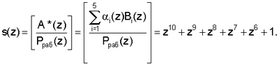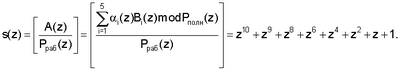 Допустим ошибка произошла по первому основанию p(z)=z+1, тогда модулярная комбинация A*(z)=(0, 1, z, z3+z2+z+1, z3+z2). Следовательно, согласно (3) получаем значение полинома s(z)