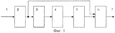 Структура устройства спектрального обнаружения и коррекции ошибок в кодах полиномиальной системы классов вычетов представлена на фиг.1. Устройство состоит из регистра 2, предназначенного для хранения остатков по рабочим и контрольным основаниям ПСКВ в течение времени обнаружения ошибки, вход которого соединен со входом 1 устройства, блока вычисления интервального полинома 3, вход которого соединен с выходами регистра 2, а выход подключен к блоку спектрального анализа 4, выход последнего соединен со входом блока памяти 5, предназначенного для хранения констант – векторов ошибки, выход блока памяти подключен ко второму входу сумматора 6, осуществляющего исправления ошибки путем суммирования искаженной ошибкой комбинации кода ПСКВ с вектором ошибки, первый вход которого соединен с выходом регистра 2, по которым передаются остатки модулярного кода ( 1(z), 2(z),…, n(z)) по рабочим и контрольным основаниям, выход сумматора 6 является выходом 7 устройства.
