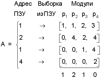 Пусть А=11=(1, 2, 1, 4). Тогда в ПЗУ поместим значения i, :