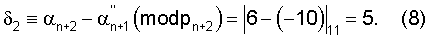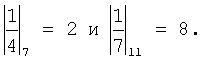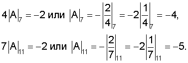 Так как |А|7=-4, а |А|11=-5 возьмем их дополнения, т.е. |A|7=7-4=3, а |A|11=11-5=6.