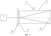 На Фиг.2 показаны осесимметрическая камера, выполненная в виде трубы 14 с тремя отверстиями 15, 16, 17, смотровое стекло 18 и источник ультрафиолетового излучения 1.