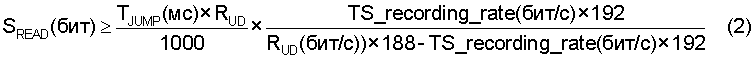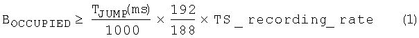 Полагая, что данные BOCCUPIED, выходящие из буфера 330 считывания на декодер со скоростью TS_recording_rate удовлетворяют уравнению (1), опустошение буфера 330 считывания не возникает, даже если данные не могут больше сохраняться в буфере 330 считывания в течение времени TJUMP.