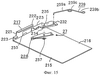 Часть 217 удержания, сформированная на блоке 215 задвижки, выполнена с соединительной деталью 221, которая продолжается вверх от ближнего конца элемента 216 задвижки, и с первой деталью 222 зацепления, отогнутой в направлении элемента 216 задвижки, сформированной на дальнем конце соединительной детали 221, как показано на фиг.14 и 15. С обеих сторон соединительной детали 221 сформированы вторые детали 223 зацепления, отогнутые с приданием им L-образной формы на более низком уровне, чем первая деталь 222 зацепления. Дальние концы вторых деталей 223 зацепления изогнуты с приданием им L-образной формы, причем их дальние концы продолжаются в направлении первой детали 222 зацепления.