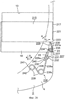 Положение поворота рычага 228 фиксатора под действием пружины 237, прикладывающей поворачивающее усилие, определяется упором стороны рычага 228 фиксатора, на котором расположена нажимная деталь 230, в соединительную деталь 221.