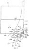Ближе к противоположной боковой стороне 9 изогнутой секции 7 основного блока 5 корпуса картриджа сформирована выемка 47 зацепления, предназначенная для выброса, с которой зацепляется участок блока выброса, установленный в устройстве записи и/или воспроизведения, как показано на фиг.12.
